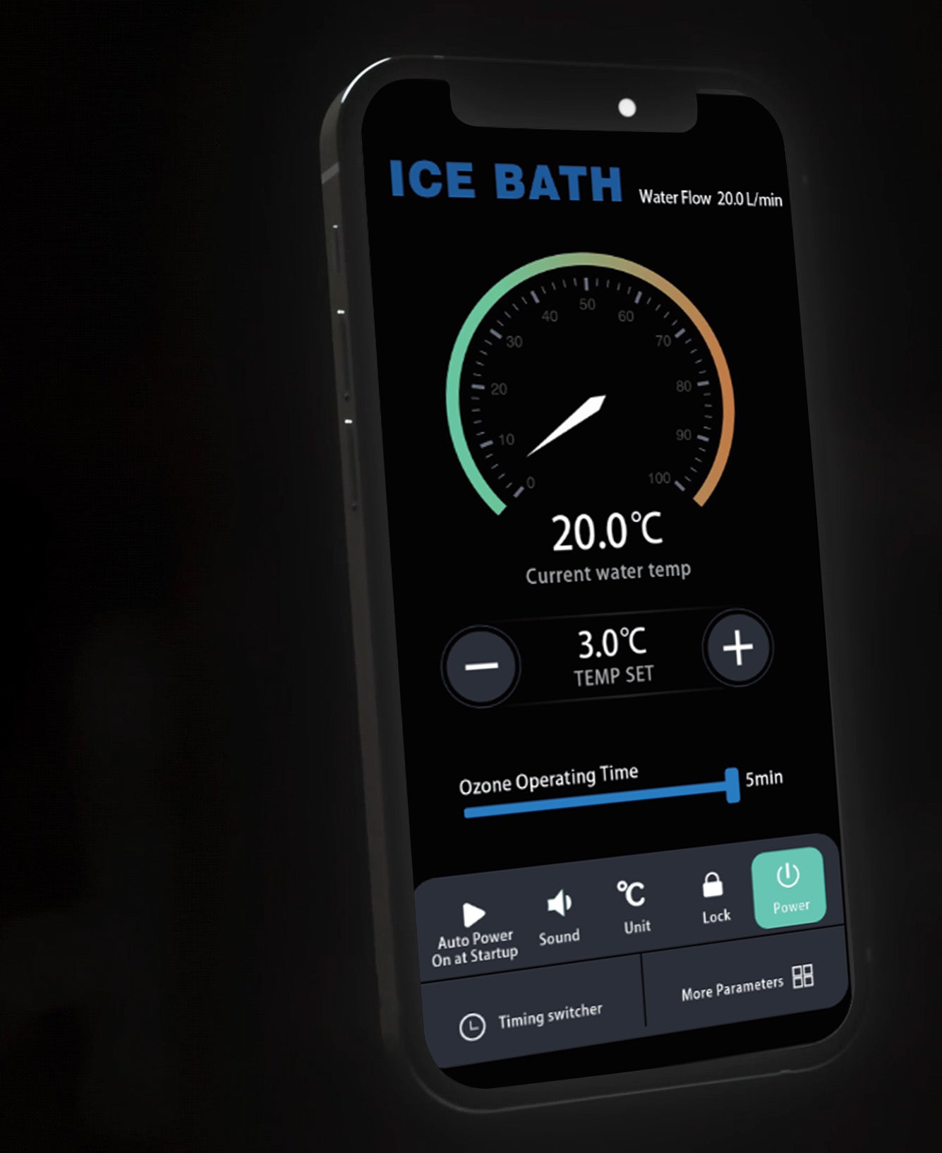 Just connect two water pipes and start your ice bath experience with a single touch.
